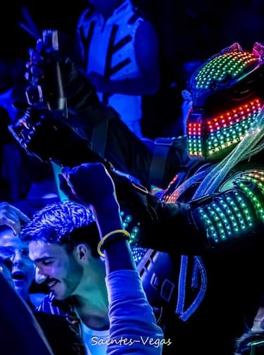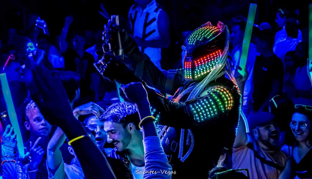 Grâce à leurs combinaisons lumineuses programmables, équipées de centaines de LED, lasers et effets lumineux synchronisés à la musique, ces performeurs donnent vie à un univers coloré et immersif.