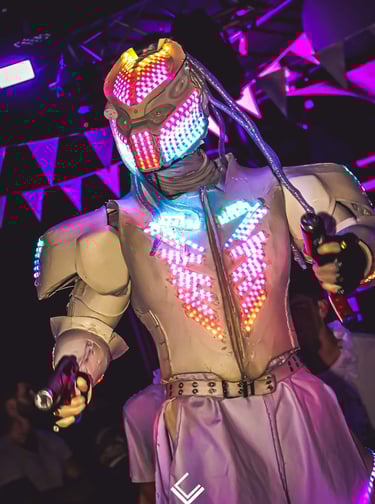 🦾 Technologie de pointe : costumes LED, lasers et effets synchronisés.