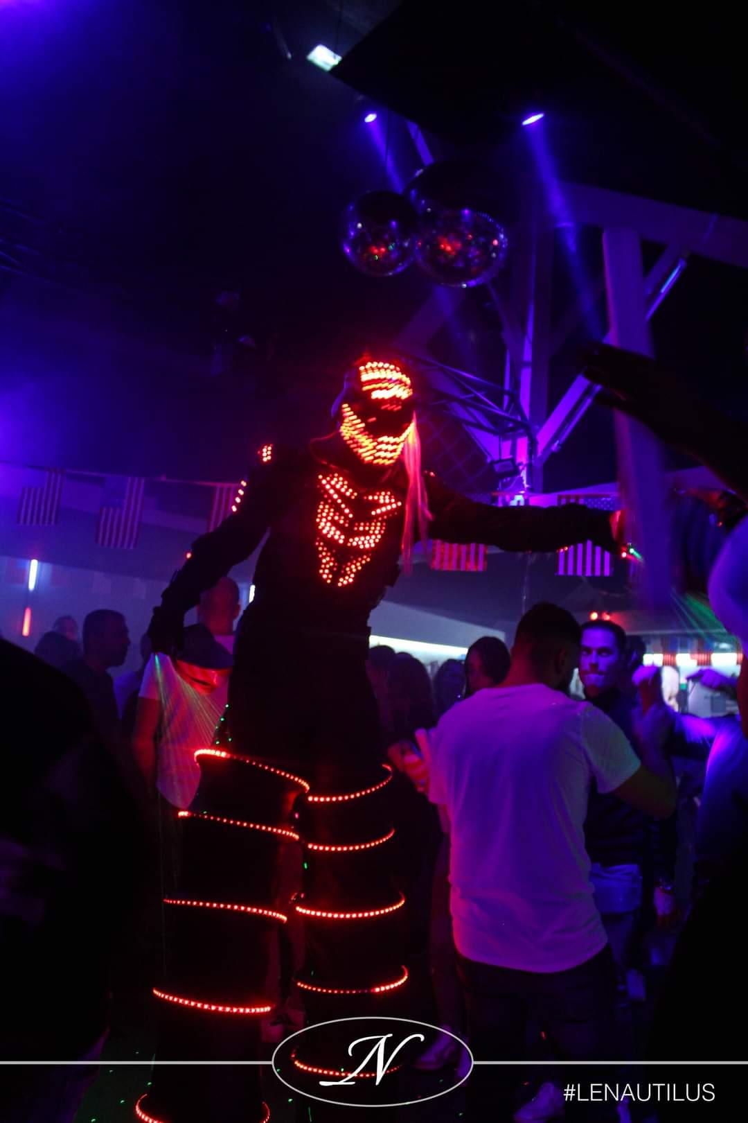 Chaque Robot LED est équipé d’un costume lumineux haute technologie composé de milliers de diodes programmables. Ces effets sont synchronisés avec la musique et les mouvements du performer, offrant un ballet lumineux et interactif.